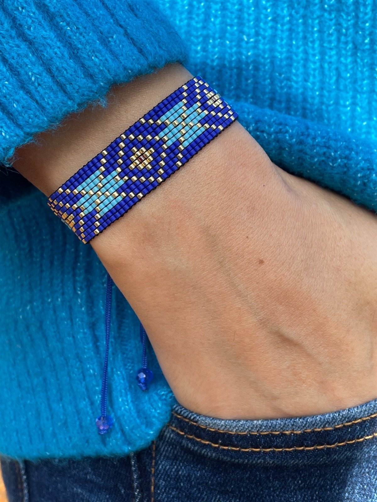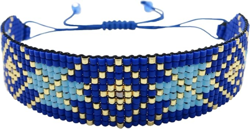 Melorins handgefertigtes, extrabreites Armband, gewebt aus 11 Reihen japanischer Perlen im in harmonischem und geometrischem Design, Modell 1100
