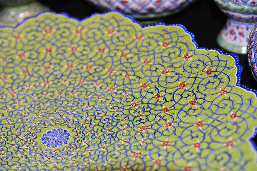 Minakari ist eine traditionelle persische Kunstform, bei der feine Blumenmuster von Hand auf Metall – meist Messing – gemalt und anschließend im Ofen eingebrannt werden, sodass die Farben dauerhaft leuchten. Dieses Minakari-Set besteht aus zwei kleinen Vasen, einer großen Vase, einer Pralinendose und einem dekorativen Teller. Alle Stücke sind in der typischen Hauptfarbe grün gehalten und mit filigranen, detailreichen Blumenmotiven verziert, die die Eleganz und Handwerkskunst dieser jahrhundertealten Technik widerspiegeln.