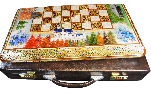 Schachbrett-Backgammon, handbemalten Bilder von Schloss Neuschwanstein, Frauenkirche Dresden...